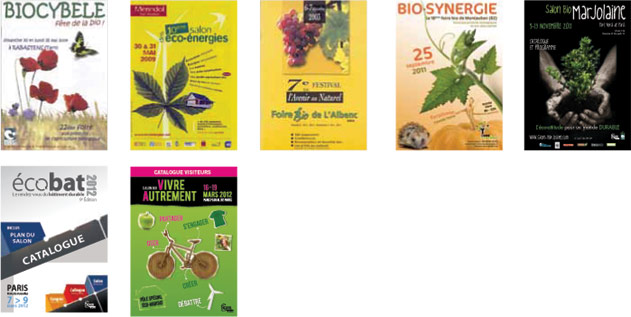 Catalogues salons : Biocybèle, Salon des Econergie de Mérindol, Festival de l’Avenir au Naturel de L’Albenc, Biocènose, Marjolaine, Ecobat, Vivre Autrement, Foire Bio Garonne ….